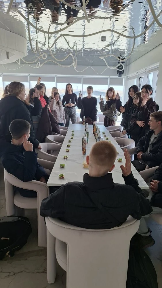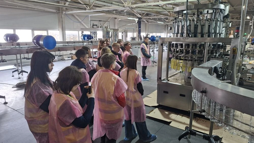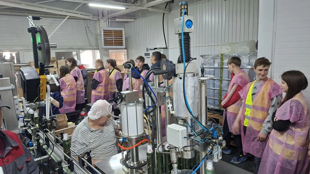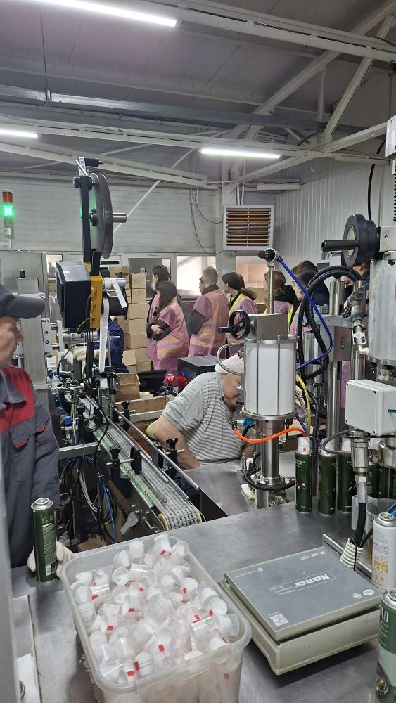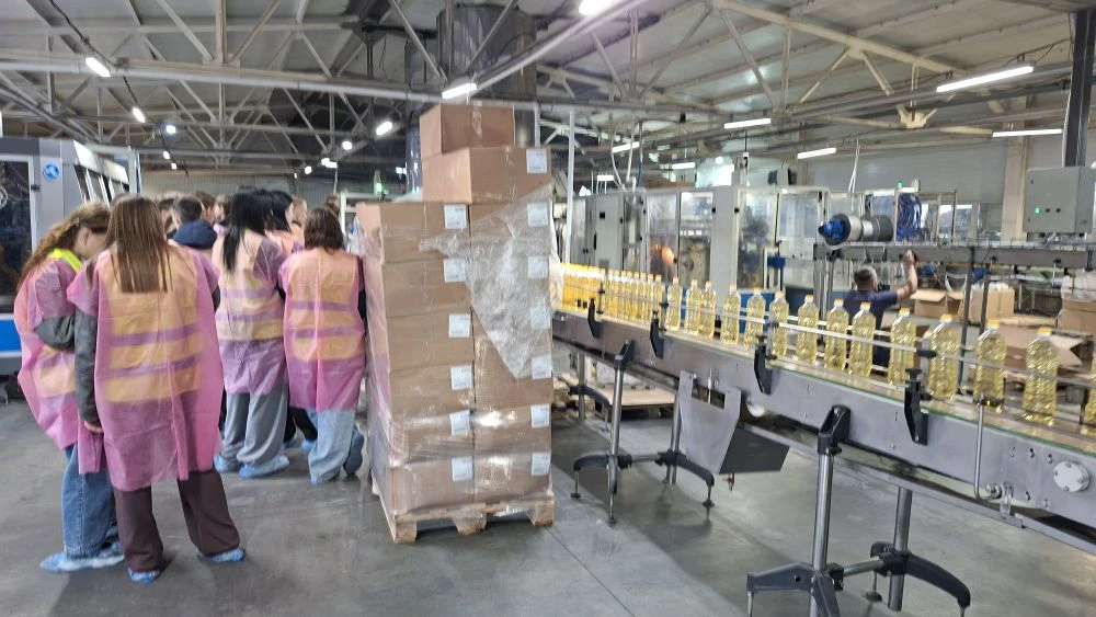 Посетили цех фасовки готовой продукции. Увидели как из маленьких пластиковых пробирок получаются литровые и 5литровые тары под масло, как происходит розлив масла по тарам, наклеивание этикеток и упаковка в коробки.